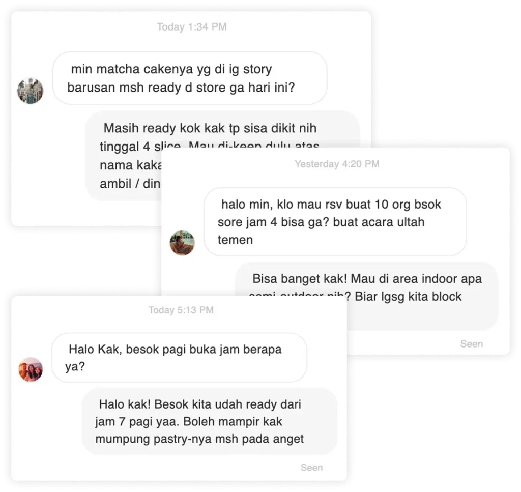 Dalam waktu kurang dari satu bulan, engagement meroket. Followers yang masuk sekarang adalah orang-orang di sekitar cafe. Hasil terbaiknya adalah: DM yang masuk sekarang berisi pertanyaan “Kak, besok pagi buka jam berapa?” atau “Bisa reservasi meja untuk 10 orang?”. Penjualan harian juga naik signifikan, murni dari audiens organik sosial media, tanpa ads.